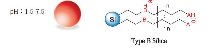 長烷基鏈中嵌入可電離酸性基堿性基團(tuán),可提供陰/陽離子排阻/交換/氫鍵/RP作用,可用于同時保留親水化合物和疏水化合物。