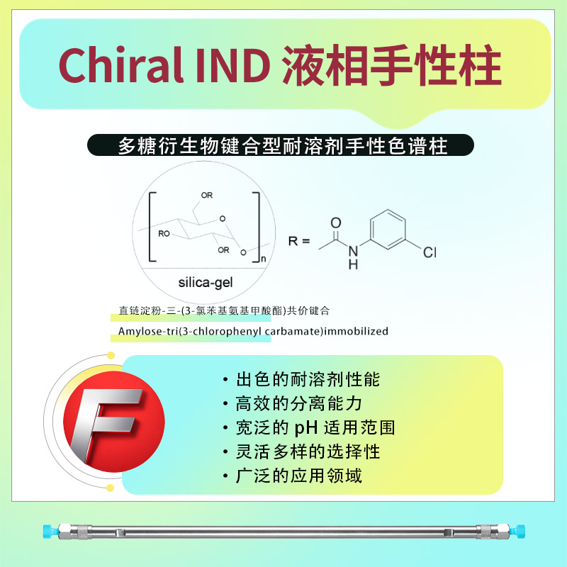 FLM Chiral IND 鍵合型耐溶劑手性柱 Chiral IND 手性柱的固定相是將特定的手性選擇劑涂敷在硅膠表面構(gòu)建而成。該手性選擇劑經(jīng)過菲羅門公司的專業(yè)研發(fā)與篩選,其結(jié)構(gòu)能夠與手性化合物產(chǎn)生諸如 π - π 相互作用、氫鍵以及范德華力等多種相互作用,憑借這些作用實現(xiàn)對不同對映體的精準(zhǔn)選擇性分離。 手性選擇劑獨特的分子構(gòu)型賦予了該固定相出色的立體選擇性,面對眾多具有各異官能團和復(fù)雜結(jié)構(gòu)的手性化合物,都能展現(xiàn)出卓越的分離效能。 一、溶劑兼容性 在正相色譜模式下,Chiral IND 手性柱展現(xiàn)出良好的適應(yīng)性,能夠與多種常見正相溶劑和諧搭配,像正己烷、異丙醇、乙醇等都能作為其流動相的組成部分。一般情況下,以正己烷和異丙醇按不同比例混合作為流動相,通過靈活調(diào)整二者比例,可實現(xiàn)對不同手性化合物分離效果的優(yōu)化。 該手性柱對于含有少量極性改性劑的流動相體系也有一定的耐受能力,在一定程度上拓展了其應(yīng)用場景。但在反相條件下,其兼容性相對受限,在實際應(yīng)用中較少在反相模式下使用。 二、應(yīng)用范圍 Chiral IND 手性柱在多個關(guān)鍵領(lǐng)域發(fā)揮著重要作用,如藥物研發(fā)、天然產(chǎn)物分析以及農(nóng)藥殘留檢測等。在藥物研發(fā)環(huán)節(jié),常用于手性藥物中間體和最終成品的對映體純度分析與分離工作,這對于保障藥物的治療效果以及用藥安全至關(guān)重要。例如,在抗腫瘤手性藥物的研發(fā)過程中,運用 Chiral IND 手性柱能夠精準(zhǔn)地分離出具有活性的對映體,同時去除可能存在的無活性或有害對映體。 在天然產(chǎn)物研究領(lǐng)域,它可用于分離和鑒定具有手性結(jié)構(gòu)的天然化合物,助力研究人員深入探究天然產(chǎn)物的化學(xué)結(jié)構(gòu)和生物活性。在農(nóng)藥殘留檢測方面,能夠針對具有手性結(jié)構(gòu)的農(nóng)藥開展對映體特異性分析,為環(huán)境監(jiān)測以及食品安全評估提供更為精準(zhǔn)的數(shù)據(jù)。 三、供貨信息: